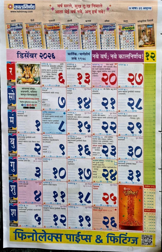 Kalnirnay December 2025 (Marathi Calendar)
