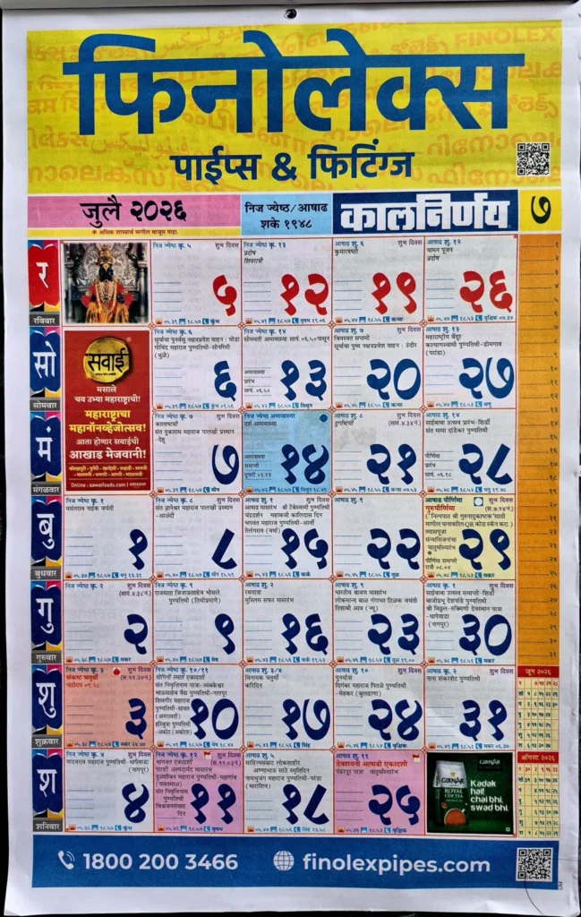 Kalnirnay July 2026 (Marathi Calendar)